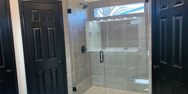 This primary bath features a walk-in custom shower with his and hers shower heads, a custom deep soaking tub, and much more!